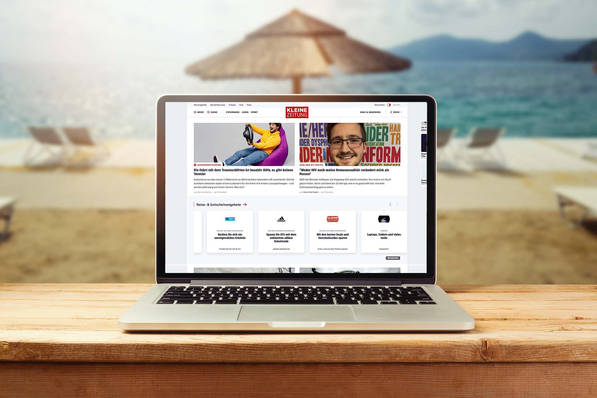 Ihr Reise- und Gutscheinangebot als attraktive Drehscheibe. Sie wünschen sich mehr Aufmerksamkeit für Ihr Reiseangebot? Oder haben einen Gutschein, der großes Interesse verdient? Dann ist der neue Reise- und Gutschein-Ticker genau das richtige für Ihr Angebot. Der Reise- und Gutschein-Ticker ist eine über die gesamte Bildschirmbreite reichende Anzeigenfläche, in der bis zu 20 Anzeigen rotieren. Das bedeutet, Ihre Ticker-Anzeige taucht im Blickfeld der User:innen auf, ohne dass sich diese bis zu Ihrem Angebot durchklicken müssen. Beim Klick auf Ihr spezielles Angebot landen Interessierte direkt auf der von Ihnen gewünschten Website.