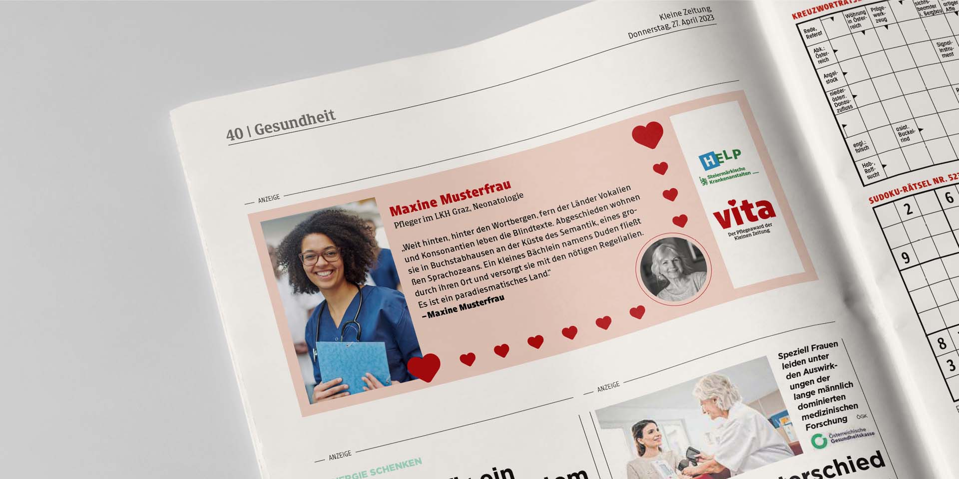 Mit der Vita-Botschaft können sich Arbeitgeber:innen, Angehörige, Kolleg:innen – einfach jeder, der das Bedürfnis hat – bei seiner Pflegeheldin, seinem Pflegehelden bedanken. Denn – vor allem in diesem Bereich – kann ein Funken Wertschätzung so vieles bewirken.