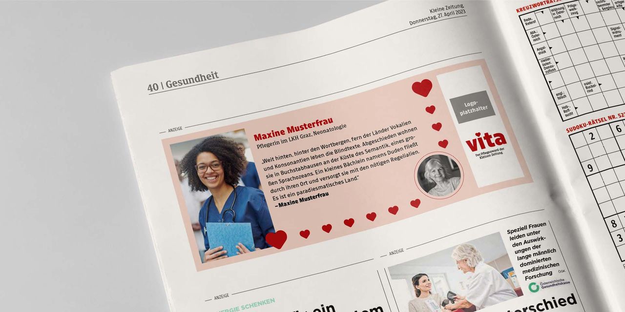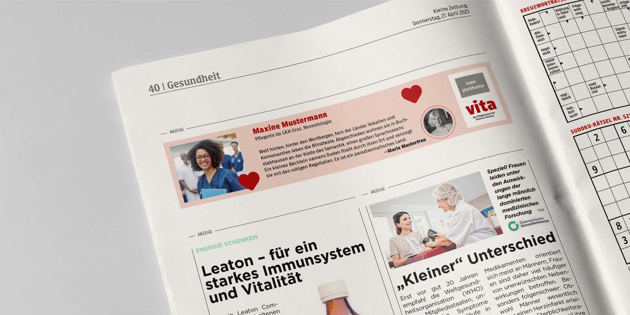 Mit der Vita-Botschaft können sich Arbeitgeber:innen, Angehörige, Kolleg:innen – einfach jeder, der das Bedürfnis hat – bei seiner Pflegeheldin, seinem Pflegehelden bedanken. Denn – vor allem in diesem Bereich – kann ein Funken Wertschätzung so vieles bewirken.