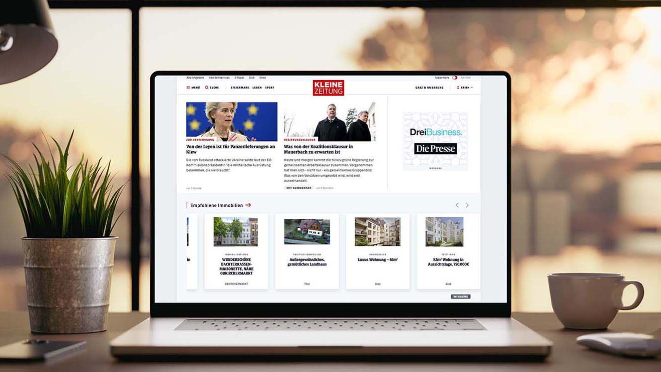 Beim Immo-Ticker dreht sich alles um Ihr Immobilienangebot. Sie wünschen sich mehr Aufmerksamkeit für Ihr Immobilienangebot oder Ihr Bauprojekt? Mit dem Immo-Ticker erreichen Sie ganz einfach Ihre Zielgruppe. Der Immo-Ticker ist eine über die gesamte Bildschirmbreite reichende Anzeigenfläche, in der bis zu 20 Anzeigen rotieren. Das bedeutet, Ihre Immo-Ticker-Anzeige taucht im Blickfeld der User:innen auf, ohne dass sich diese bis zu Ihrem Angebot durchklicken müssen. Beim Klick auf Ihr spezielles Angebot landen Interessierte direkt auf der von Ihnen gewünschten Website.
